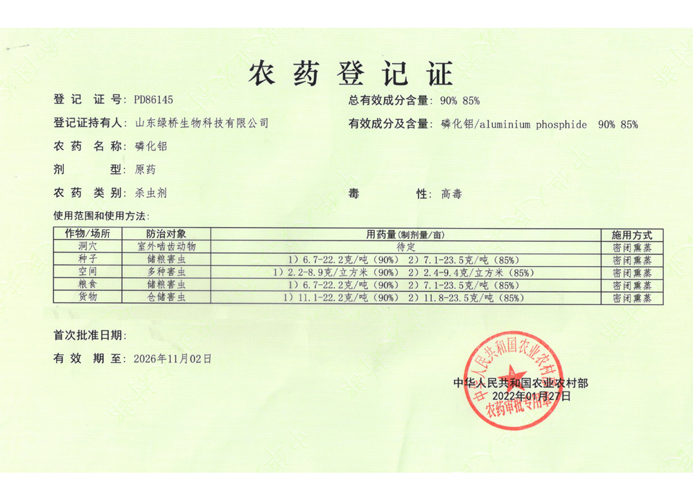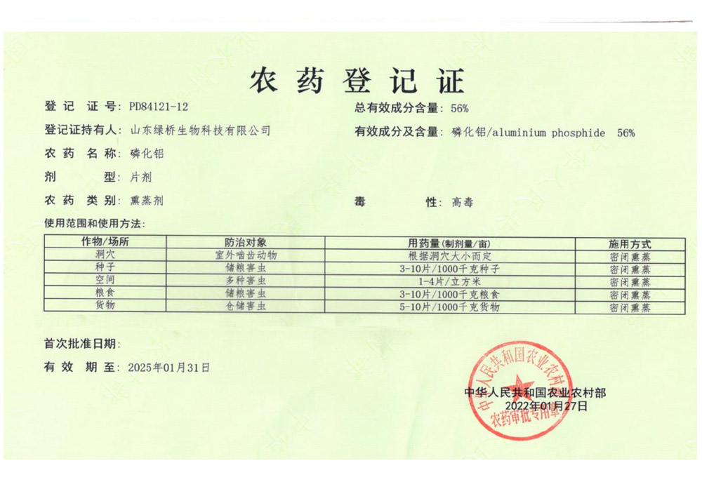 ★ 56% 片劑 農(nóng)藥登記證號(hào):PD84121-12